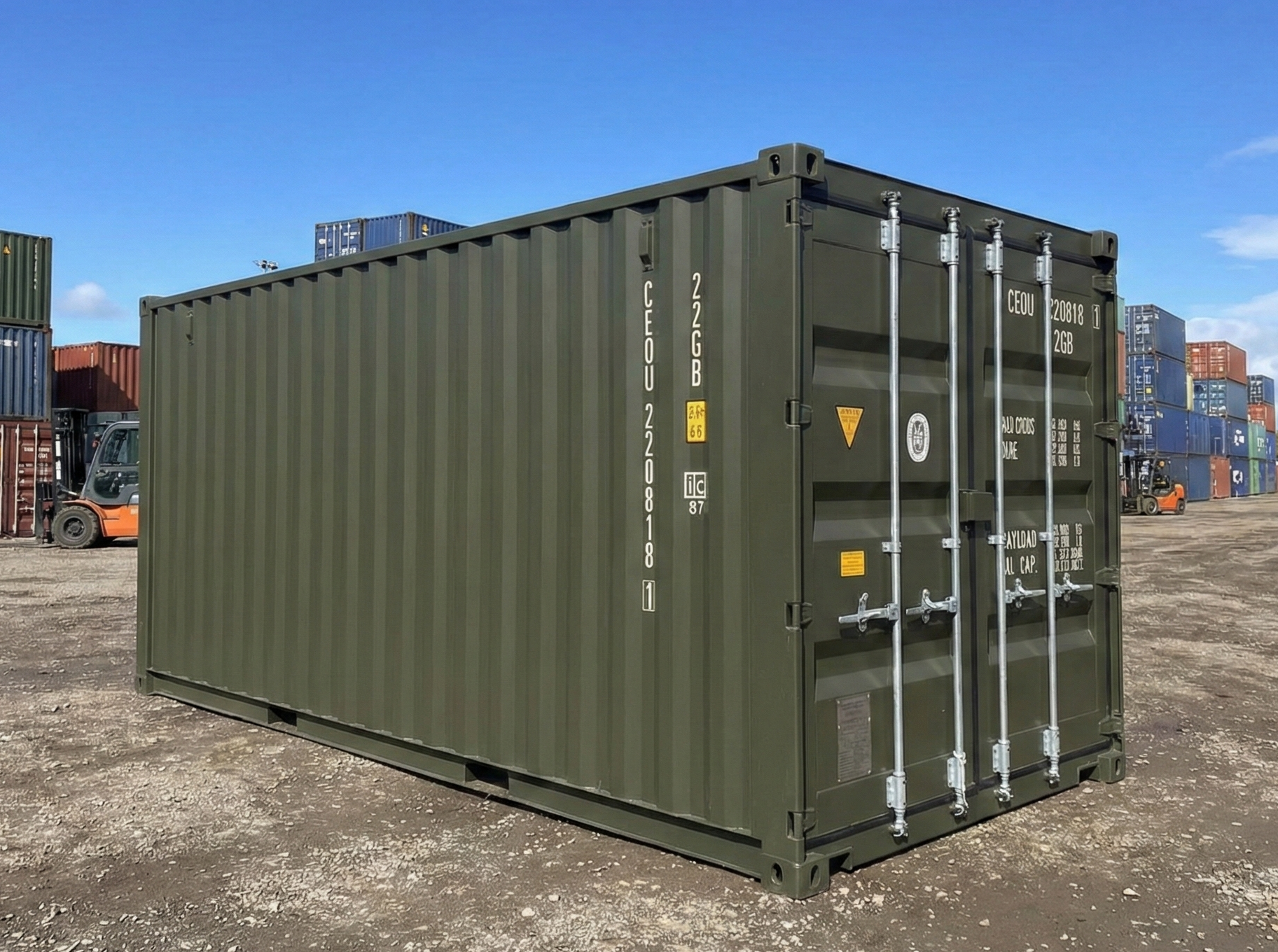 ※新造 ワンウェイコンテナとは?コンテナの生産地である中国のコンテナ港から、日本への輸送の際に一回だけ実入り(貨物を積載した状態)で使用したコンテナの事をワンウェイコンテナと呼んでいます。新造コンテナの状態から一度だけ輸入に使用するため、ワンウェイコンテナは、ほぼ新品(厳密にいえば新古)の状態のコンテナとも言えます。貨物を積載するため、輸送時に外装、内装、床などに傷や汚れが多少発生しますが、完全未使用の新造コンテナでもコンテナ輸送の特性上、完全に無傷での輸送は難しく、コンテナには多少の傷や汚れが付くことがございます。