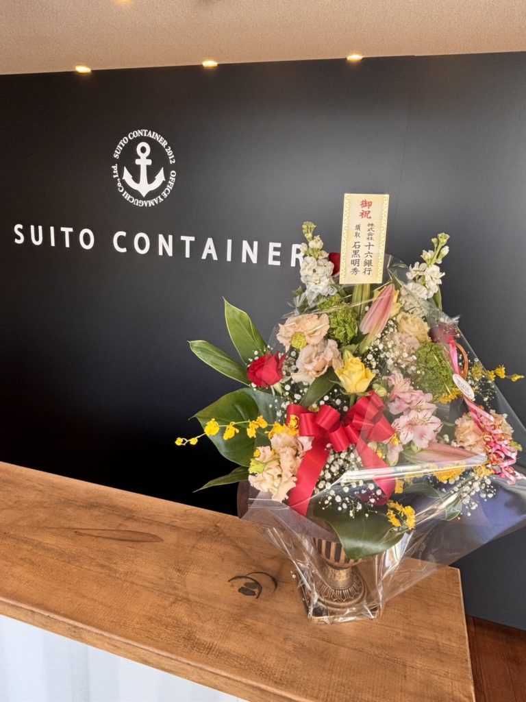 記念に、日頃よりお世話になっている十六銀行様よりお祝いのお花をいただきました。